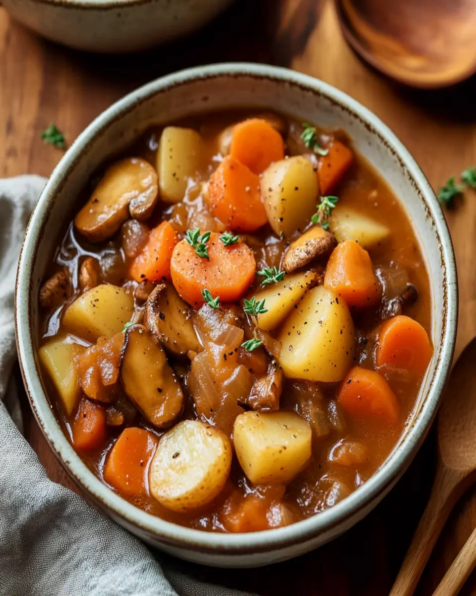 Mushrooms are the star of this stew, providing umami richness and a meaty texture without the need for meat. They absorb the flavors of the broth and herbs, making every bite satisfying.