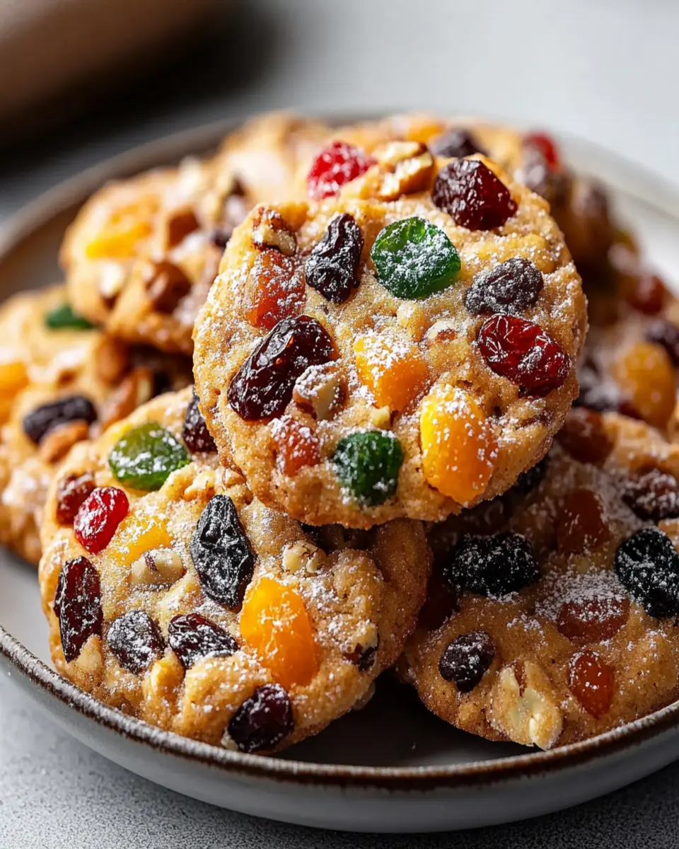Fruitcake cookies are a delightful variation of traditional fruitcake, combining sweet dried fruits and nuts in a cookie format. They offer the rich flavors of fruitcake in a chewy, easy-to-eat form, making them perfect for holiday gatherings or as a sweet treat any time of year.