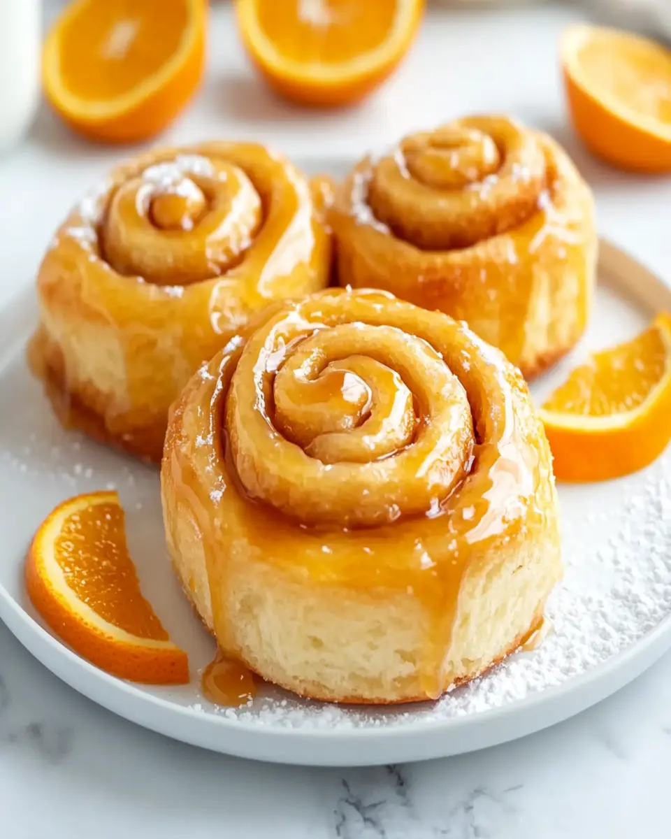 Delicious homemade orange rolls topped with a sweet glaze, perfect for breakfast or a brunch treat.