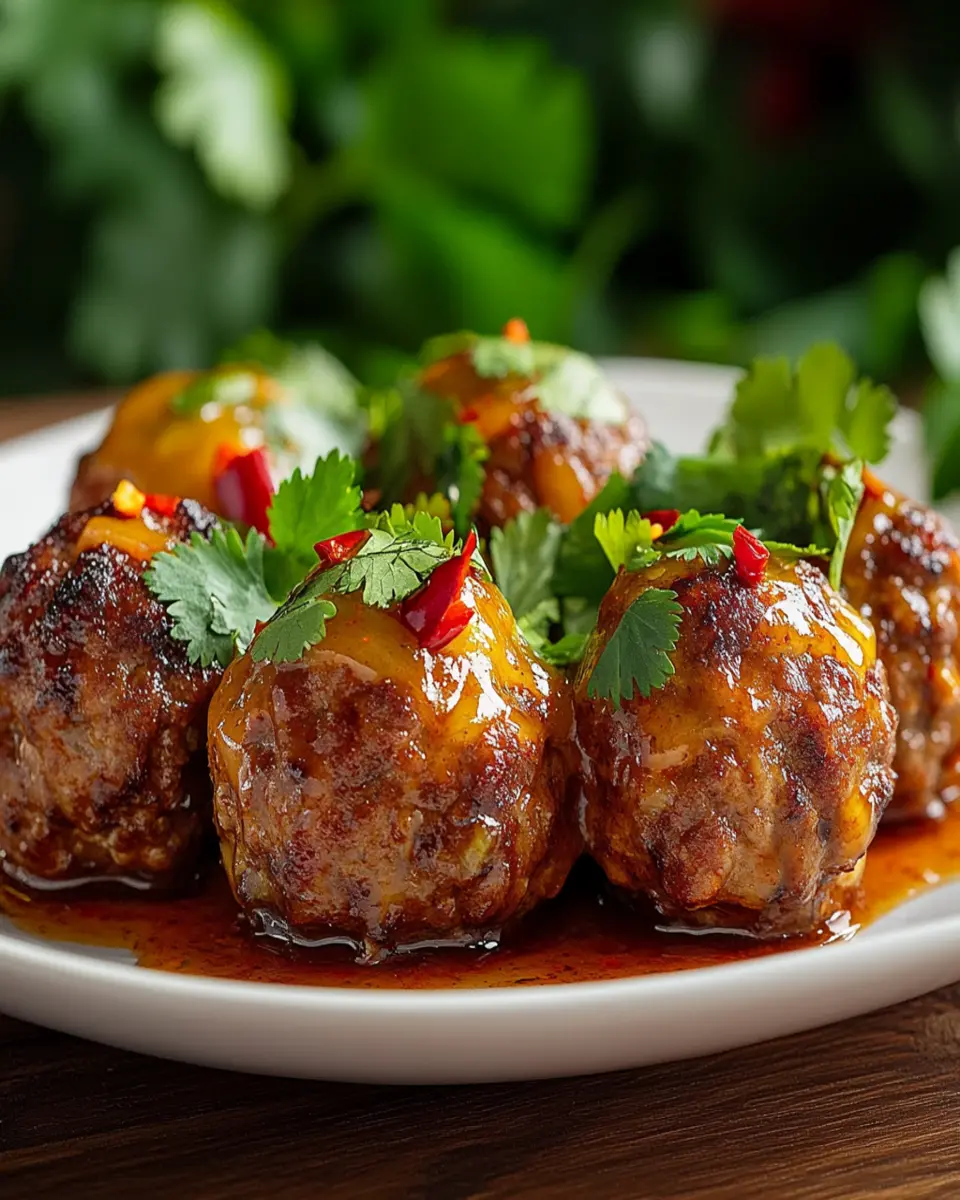 For an appealing presentation, arrange the meatballs on a vibrant platter, garnished with fresh cilantro or chopped green onions. This not only enhances the visual appeal but also adds a burst of flavor. Don’t forget to provide toothpicks for easy serving, making it a perfect finger food option for parties or gatherings.