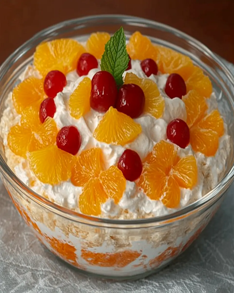 Ambrosia fruit salad is a classic dessert made with a mix of fruits, whipped cream, and often includes marshmallows. It’s known for its sweet and creamy texture, making it a favorite at potlucks and family gatherings.