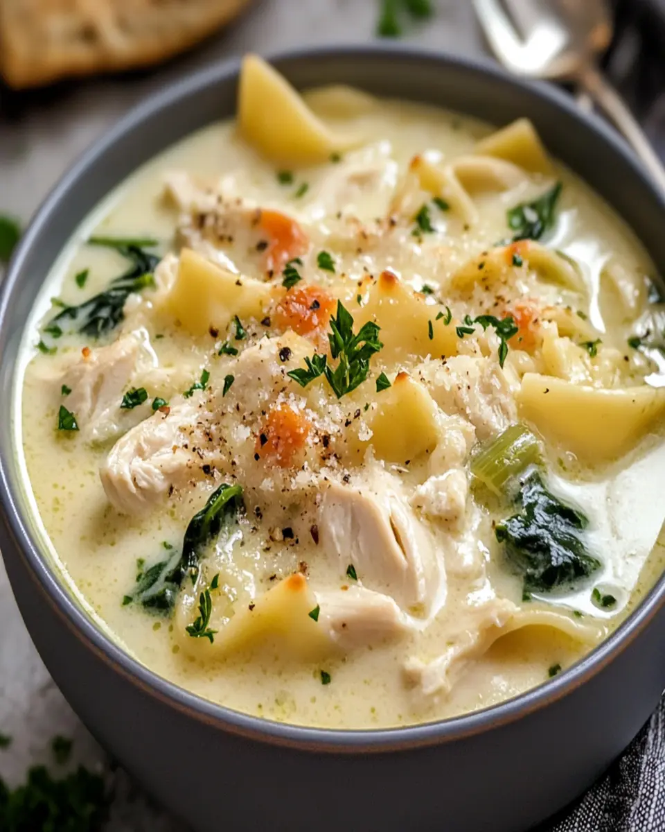 In conclusion, White Chicken Lasagna Soup is the perfect blend of comfort and flavor, combining all the delicious elements of lasagna into a creamy, satisfying bowl. This recipe is not only quick to prepare but also highly customizable, making it ideal for busy young professionals and homemade-food lovers alike. Whether you’re enjoying it on a chilly evening or meal prepping for the week, this soup is sure to become a favorite in your home. So, grab your ingredients and give this delightful dish a try—your taste buds will thank you! Don’t forget to cook, save, share, or comment on your experience!