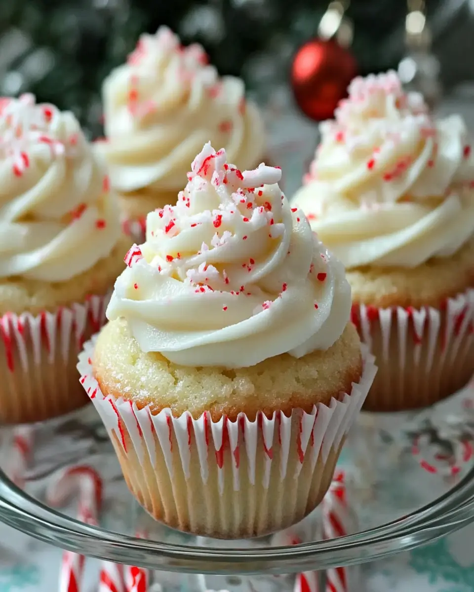 Crushed peppermint candy adds a festive touch and a delightful crunch, making these cupcakes not only tasty but visually appealing as well.